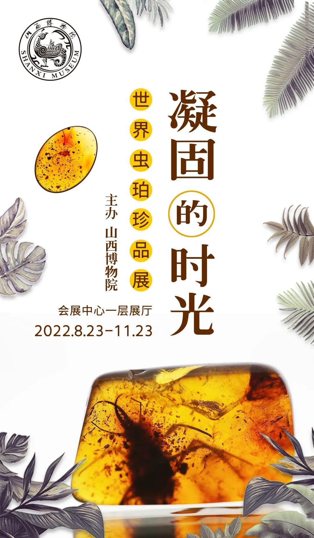 “凝固的时光——世界虫珀珍品展”精选439件展品,数量繁多、内含物形态各异的虫珀不仅会给大家带来一场金色的视觉盛宴,琥珀原石、琥珀文物及现代琥珀制品的展示,还将带大家领略从一块顽石到艺术珍品的奇妙旅程。展览时间:2022年8月23日—2022年11月23日展览时间:2022年8月17日—2022年10月31日