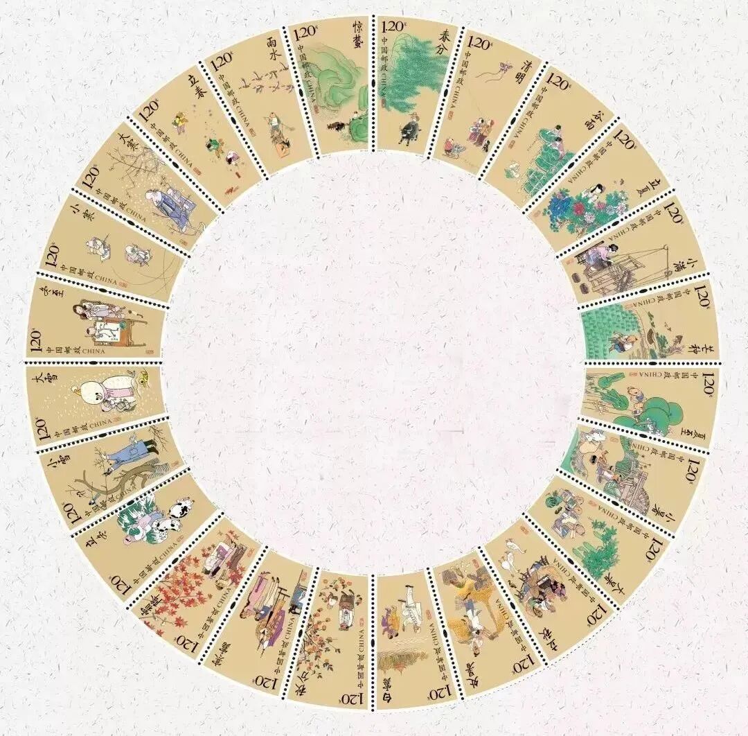 这24邮票连接成一个圆,既表达了地球是圆的,四季周而复始、气韵流动的理念,同时也传达了中国古代文化中圆满、圆融的概念。