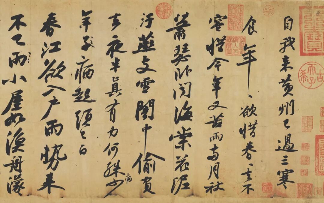 他四十三岁因乌台诗狱被抓,写了一首绝命诗,请狱卒带给弟弟,经欧阳修等极力抢救,才下放黄州。黄州时期是苏东坡写《赤壁赋》《大江东去》《念奴娇》《寒食帖》的年代,唯一留下的手稿是《寒食帖》。