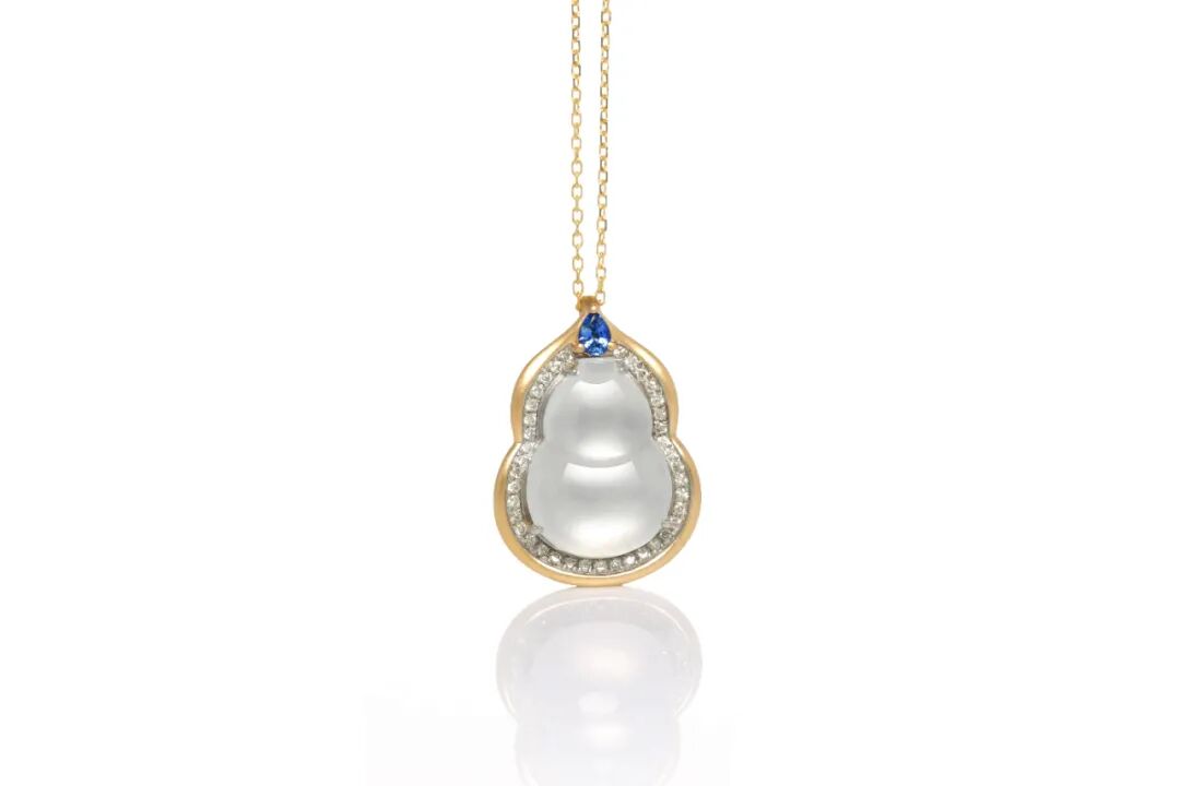 18K金镶嵌缅甸天然满绿翡翠葫芦项链配葫芦吊坠一组两件