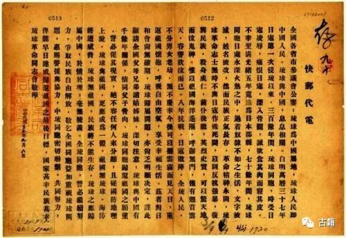 (71)《日本对琉各政治性活动》,《琉球革命同志会代电副本》,第56~57页,“中央研究院”近代史研究所保存《外交部档案》,档案号:019.11/0002。