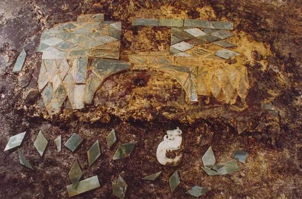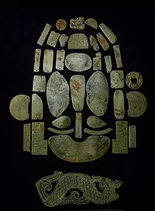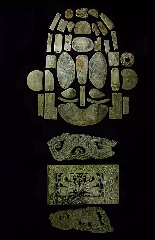 除了金缕玉衣和黄金饰具带之外,狮子山楚王陵还发现了一件很有代表性的楚王棺具。出土时各类玉片玉板有1781片,经补充后达2095片,复原成一具完成的玉棺。