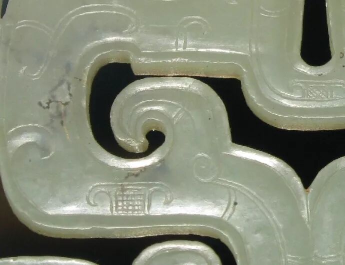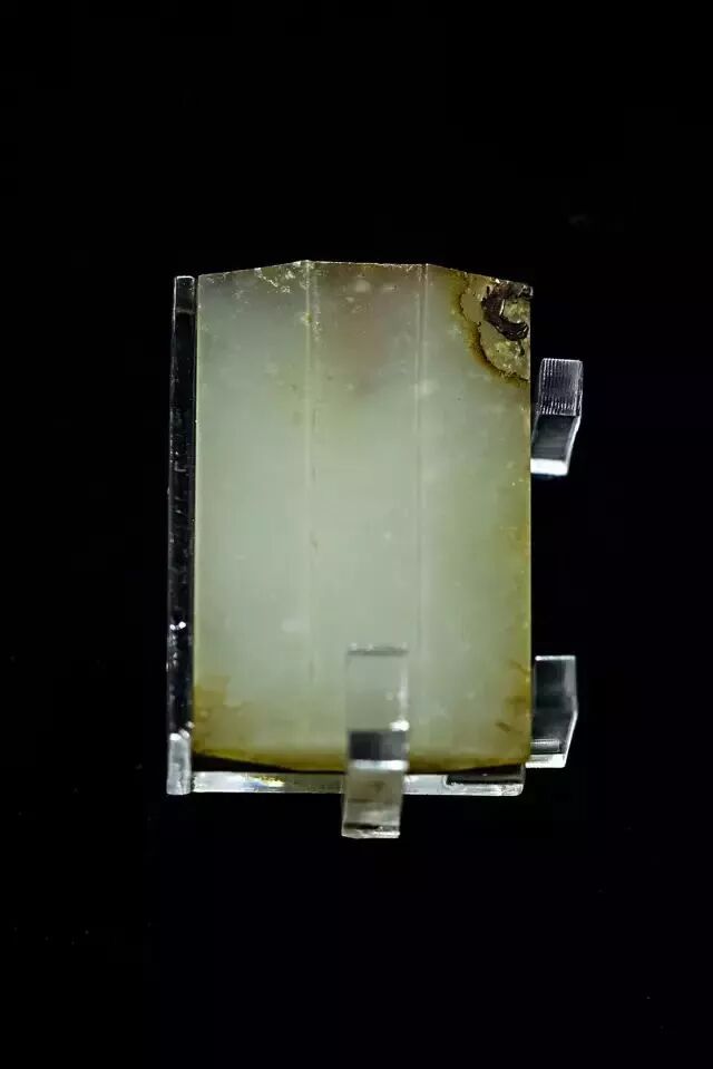 玉佩灰皮十分厚重,注意观察中部的纵向裂。