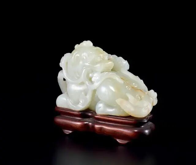 LOT.196 清 白玉雕瑞兽衔枝摆件