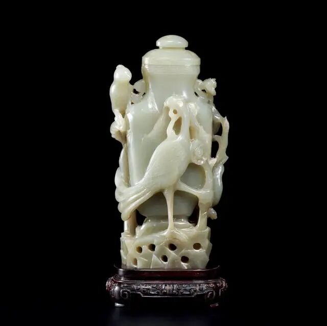 LOT.169 清 青白玉雕花鸟纹赏瓶