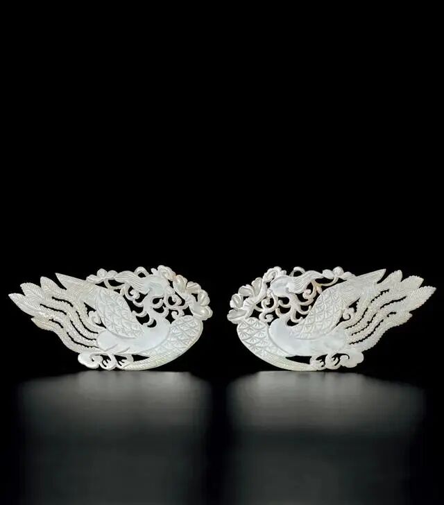 LOT.120 明 白玉凤纹嵌饰一对