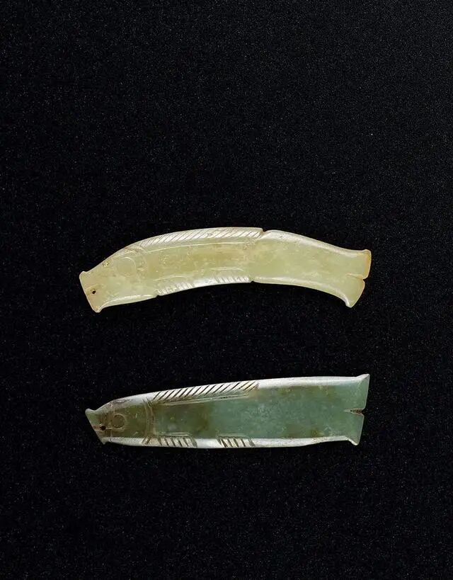 LOT.112 明 青玉雕鱼形佩一组两件