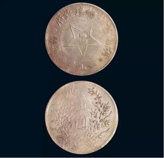 形制与中华苏维埃银币相似,为鄂豫皖根据地铸造发行。鄂豫皖位于湖北、河南、安徽三省交界处,主要为大别山腹地。在土地革命战争时期(1927-1937),曾一度成为仅次于中央苏区的革命根据地。1933年,四川成立了川陕省苏维埃民主政府,同年10月,红军歼灭了地方军阀刘存厚的主力部队,缴获了绥定府造币厂的大批先进设备,并利用这些设备铸造发行了大批精致的银币,比起1933年以前的要整齐划一、漂亮得多,很受根据地军民的欢迎。川陕银币很快改变了当时苏区金融市场的混乱,成功地挤走了国民党的金圆券、民国的铜元及其他银币甚至当地商会、钱庄的私票等,稳定了根据地经济,还为红军筹措了大量经费。现搜集到的湖南省苏维埃银圆只有1931年铸造的一种,重量27.17克,成色92%。