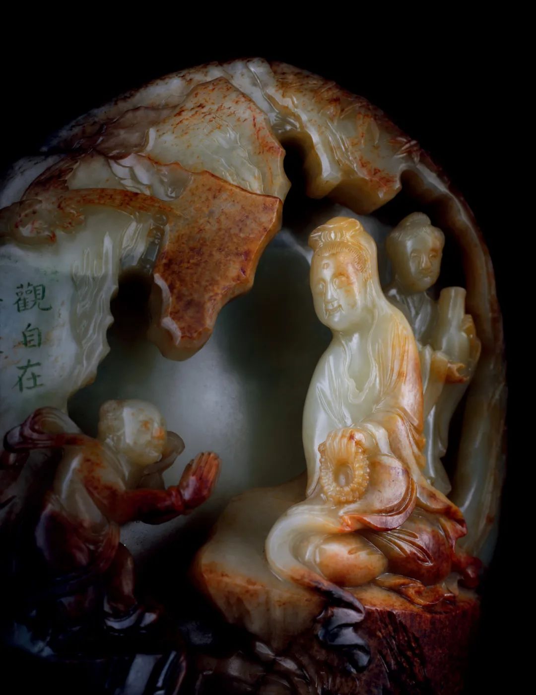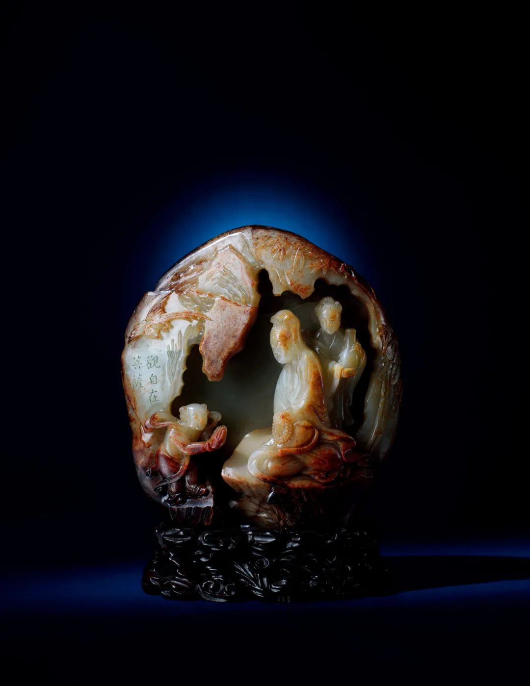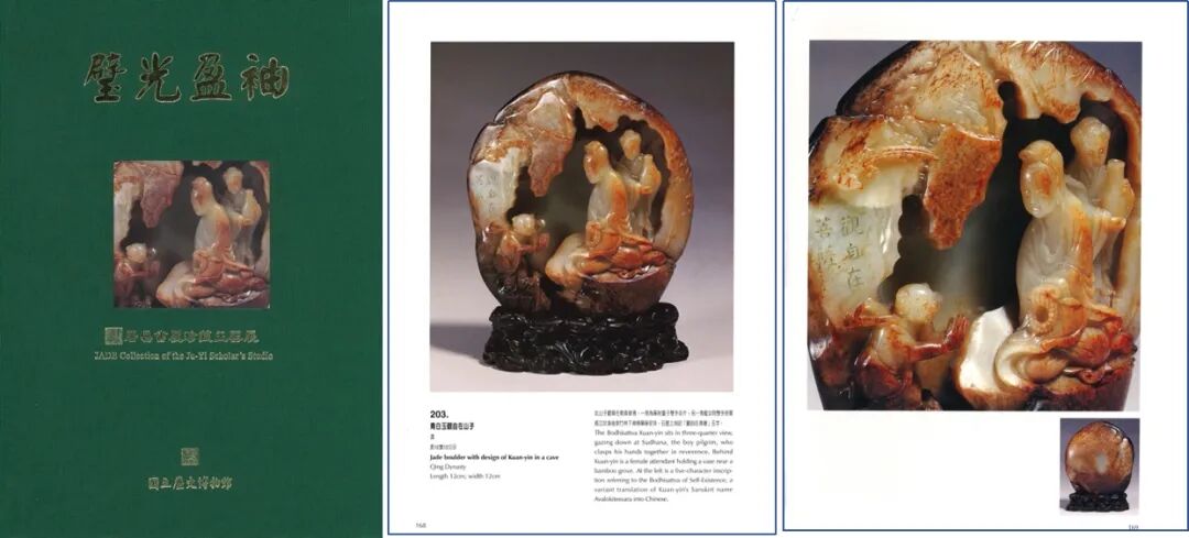 图3-5:出版物《璧光盈袖——居易书屋珍藏玉器展》的封面作品亦是本件拍品 清乾隆 玉雕观自在山子