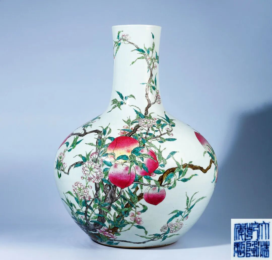 自康熙时粉彩瓷器初创以来,多有精美绝伦之设计用于瓷器之上,到了雍正时期,造型、胎釉和彩绘有了空前发展。图案纹饰开始以花卉人物为主,特别是景德镇生产的彩瓷产品,绘画益臻精妙,可使数朵绮丽彩花,婀娜多姿。如本场拍品755号雍正人物纹盘,其人物开脸绘画十分传神,粉彩料增加了器物主题的表现力,盘沿及盘心所绘折枝花卉、山石、梅鹿等也都栩栩如生、精妙入微。此外,本场还有各种彩绘的粉彩瓷器,如756号雍正粉彩苍龙教子大瓶、762号乾隆墨彩矾红二仙对饮灯笼瓶、759光绪仿乾隆粉彩九桃纹天球瓶等,均为各朝彩瓷精品,供大家欣赏挑选。