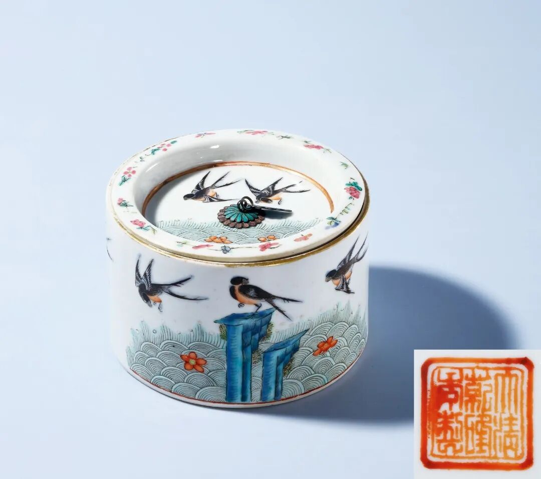 清同治 粉彩海晏河清图蟋蟀盖罐
