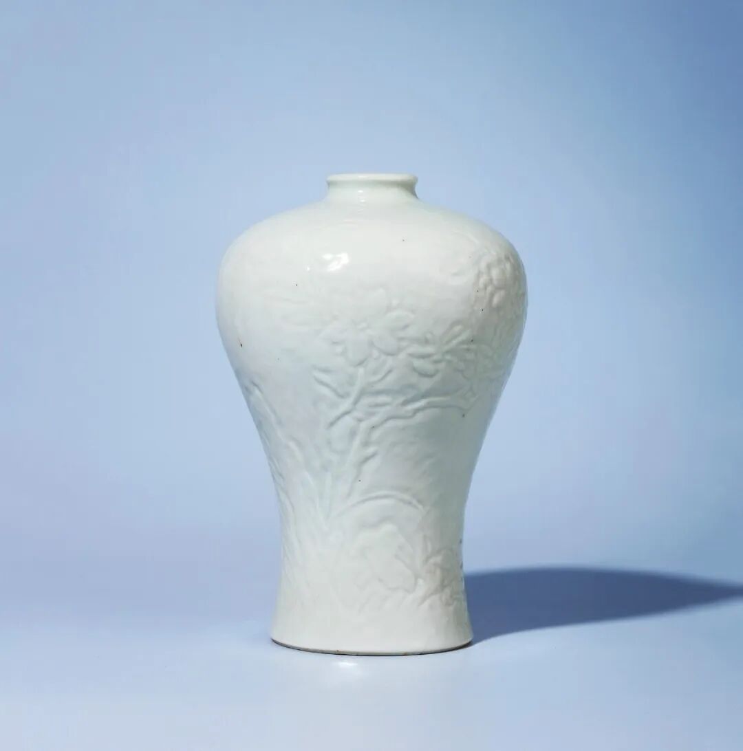 清雍正 白釉刻划梅兰竹菊图小梅瓶