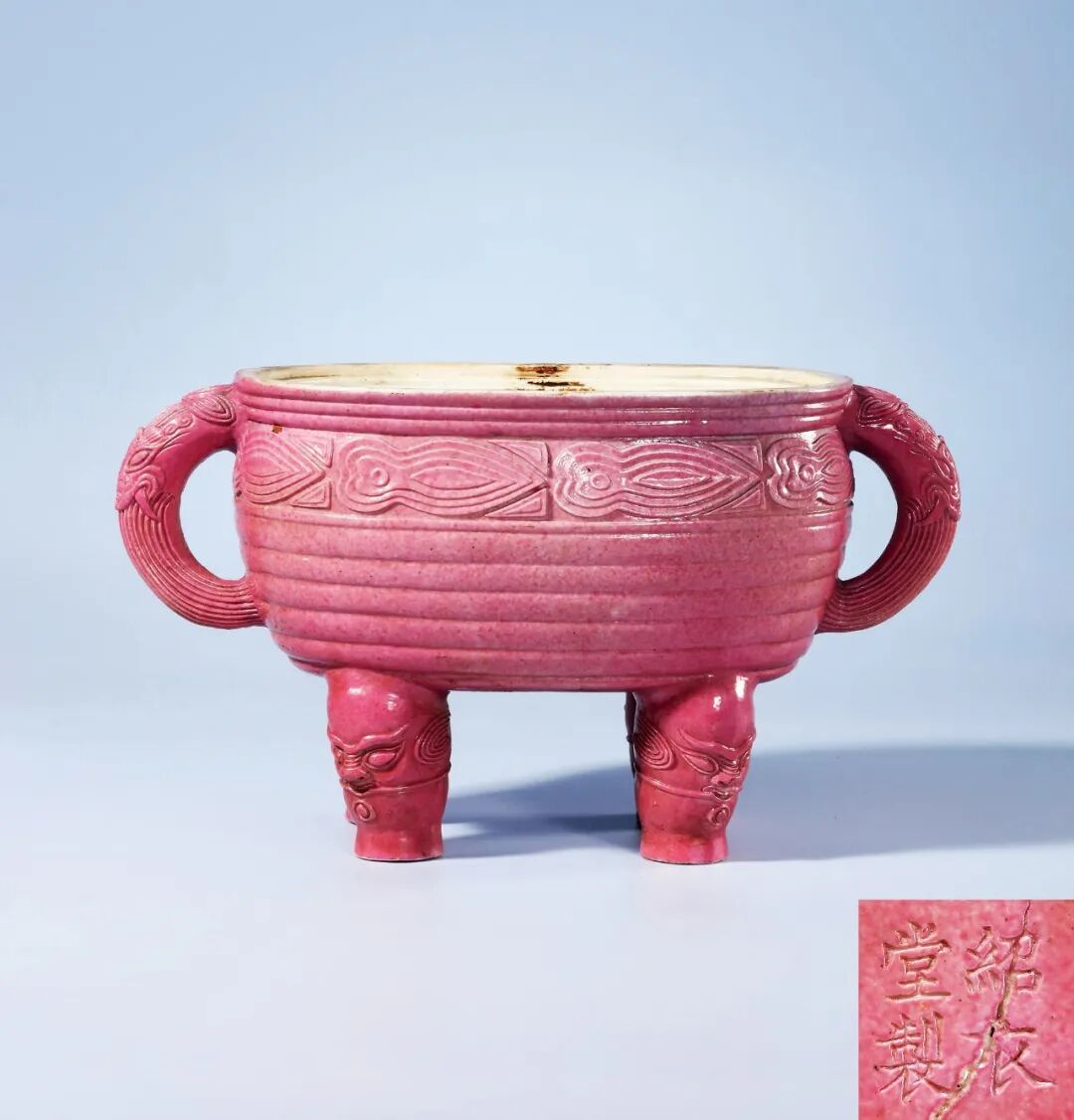 清光绪 “绍衣堂制”款胭脂红釉仿青铜纹簋