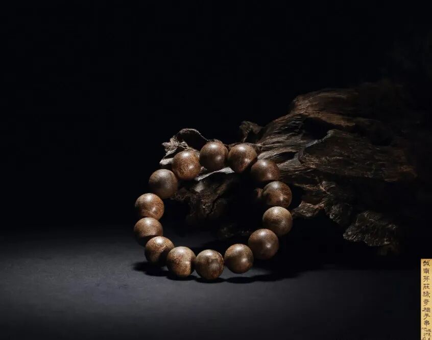 奇楠,是沉香的一种,是极品沉香中的极品,古代称作琼脂,比之沉香更加温软。通常在一大块极品沉香料中,只有可能有非常小的一部分才能算得上是奇楠,极其珍贵。若为之珠串手链,可谓顶级之物,不复再见。