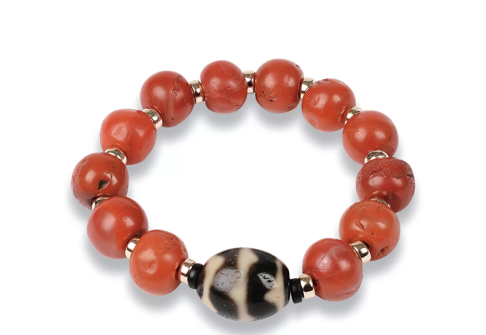 12颗南红玛瑙在达洛天珠的古朴光辉中更显娇美。