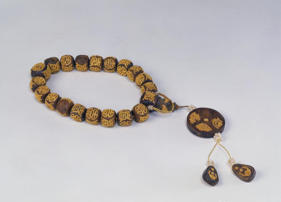 清 伽南香嵌金长圆寿字纹十八子手串 北京故宫博物院藏