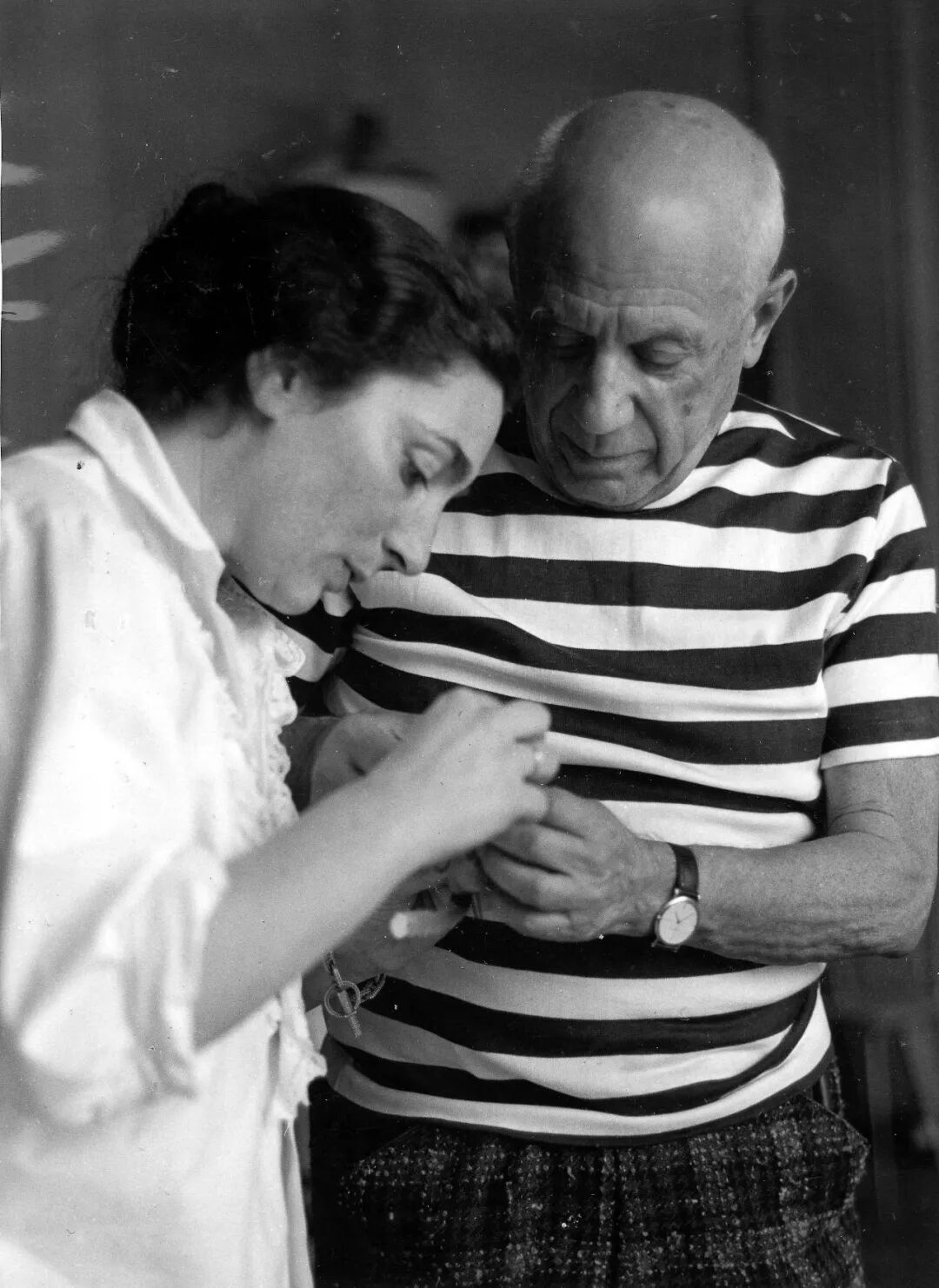 1952年,贾桂琳在法国瓦洛里的马杜拉制陶工坊邂逅了毕加索,两人很快堕入爱河,贾桂琳成为了毕加索的灵感女神,并一直厮守在他身旁,直至他于1973年离世为止。在毕加索漫长的人生路上,没有其他女性像贾桂琳一样,对他的生活和创作产生如此巨大的影响,她在毕加索笔下出现的次数更是群芳之冠。1954年,贾桂琳初次在毕加索的作品中现身。接下来的二十年,就是艺术史学家约翰理查德森口中的「贾桂琳时期」,可见她在毕加索晚年的艺术生涯里扮演着不可或缺的角色。在这段时期,摄影师大卫道格拉斯邓肯与毕加索夫妇逐渐变得熟稔,根据他的观察,两人