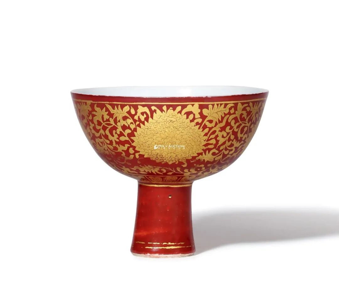 明嘉靖 矾红描金缠枝莲纹高足碗