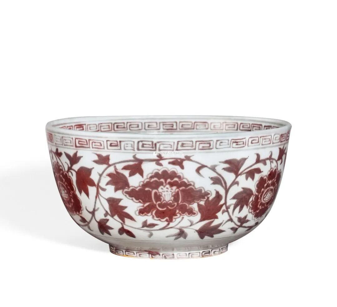 明洪武 釉里红缠枝牡丹纹大碗