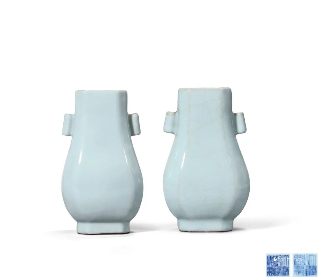 清乾隆 仿官釉贯耳瓶 (一对)
