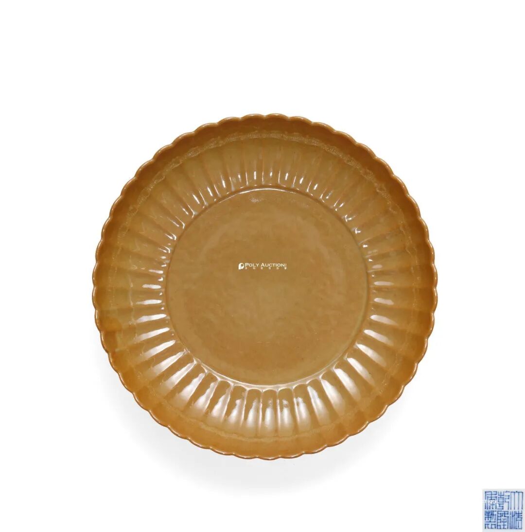 清乾隆 米黄釉菊瓣盘