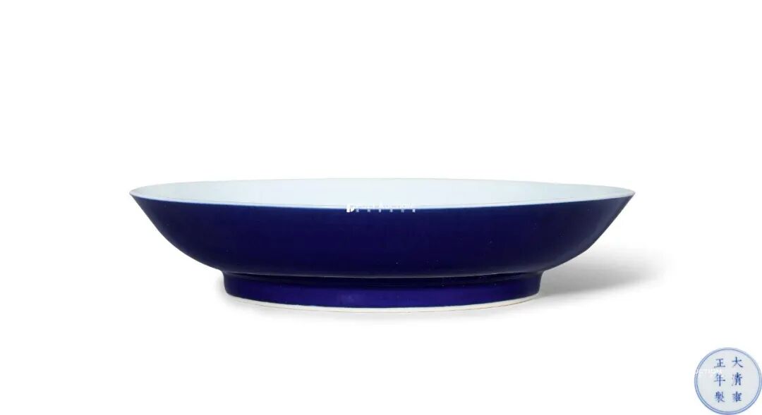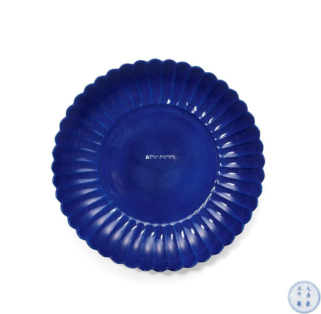清雍正 宝石蓝釉菊瓣盘