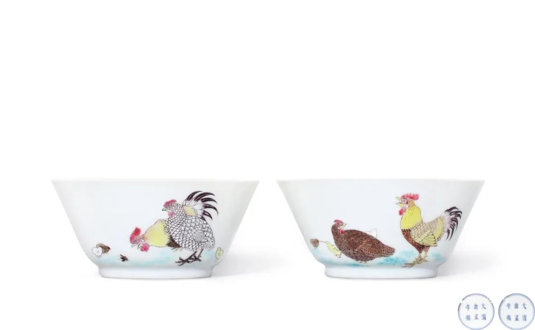 清雍正 粉彩「合家欢」鸡缸杯 (一对)