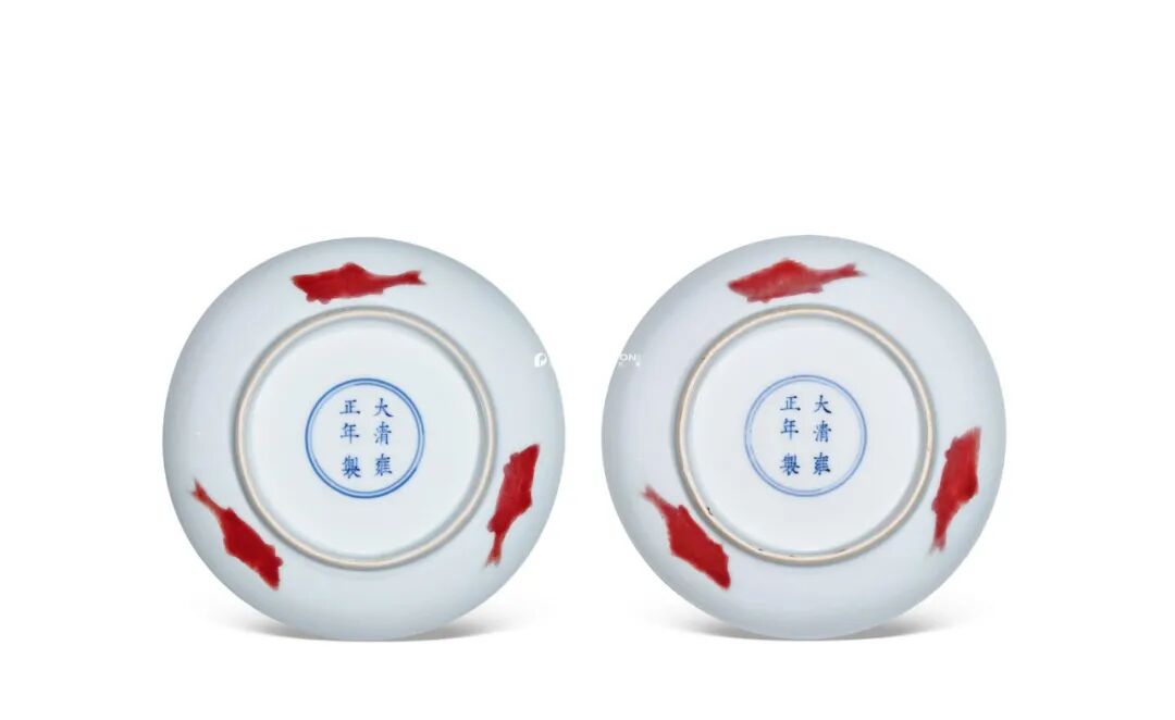清雍正 釉里红三鱼纹盘 (一对)