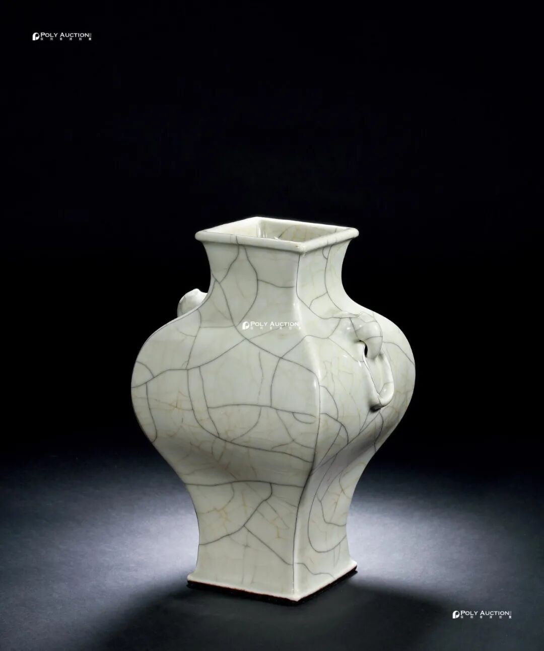 清乾隆 仿官釉四方兽耳衔环瓶