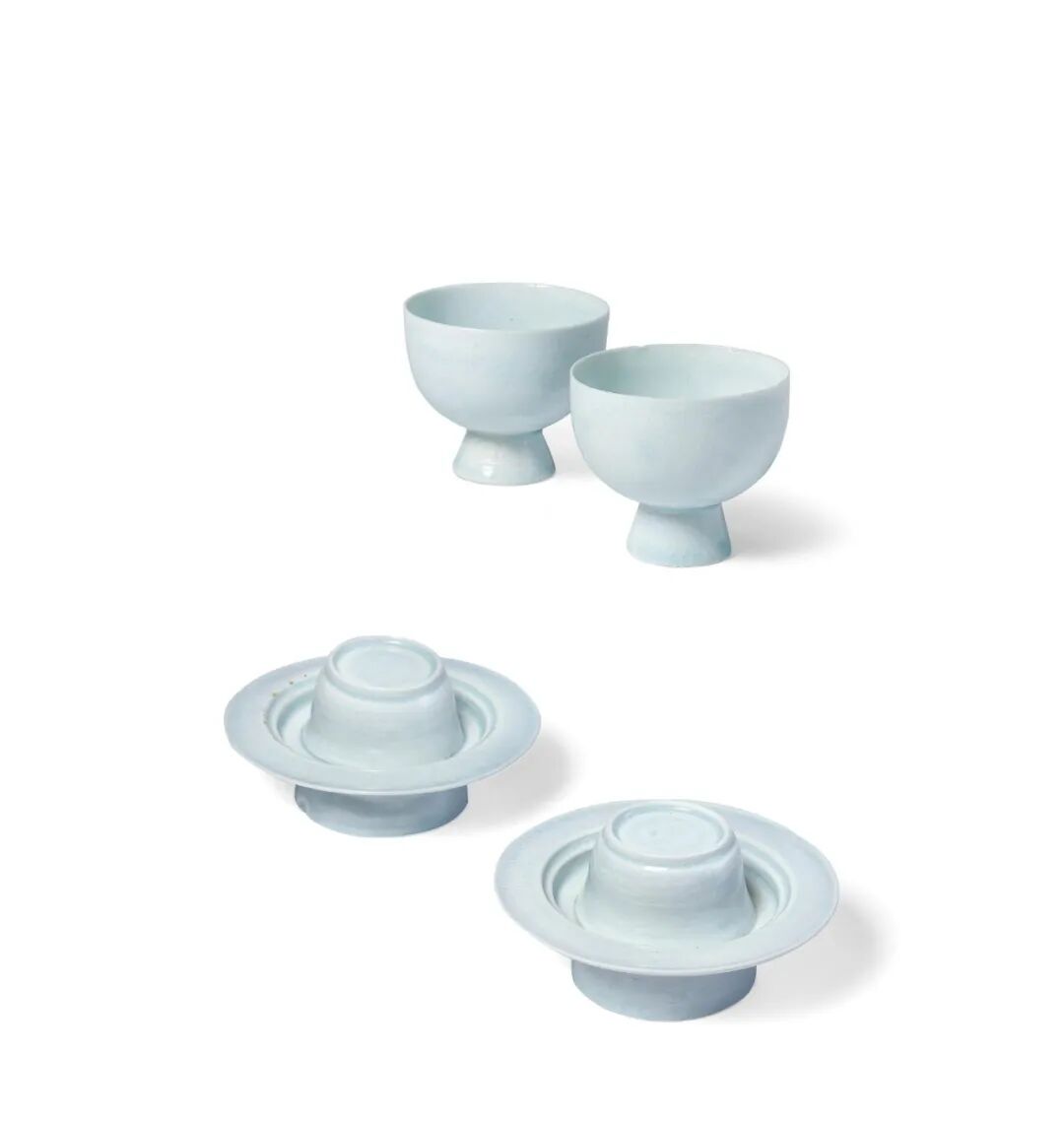 北宋 湖口窑青白釉盏及盏托 (一对)
