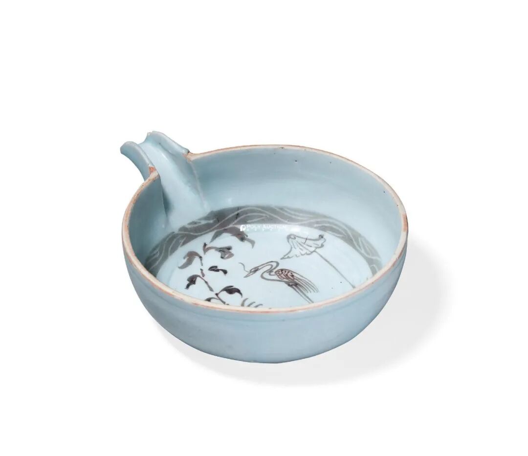 元 釉里红荷塘鸳鸯纹匜