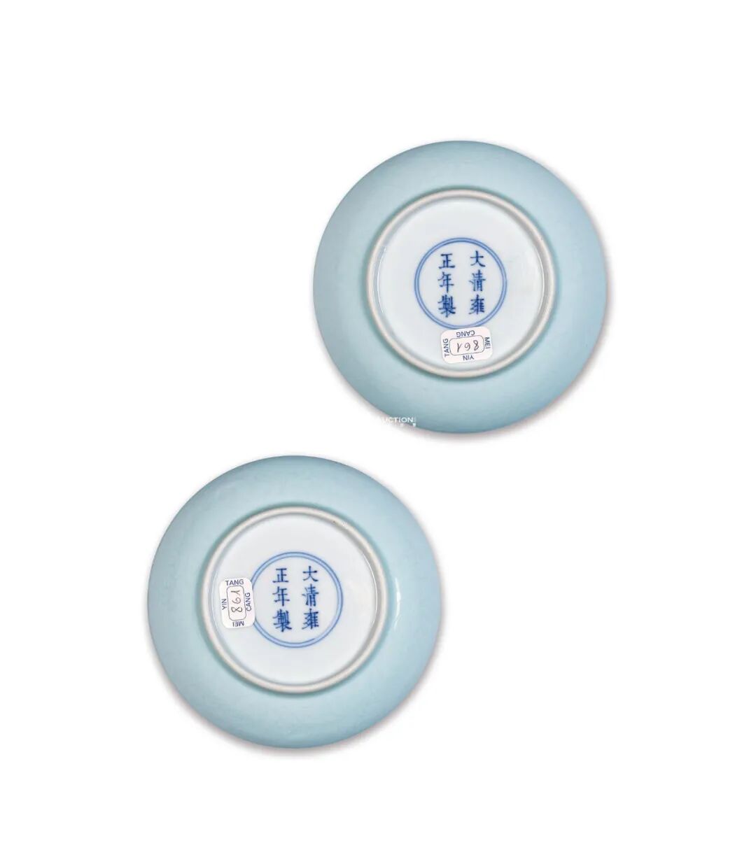 清雍正 粉青釉暗刻灵芝纹盘 (一对)