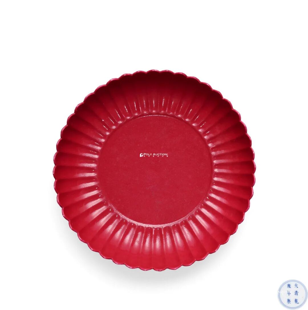 清乾隆 胭脂红釉菊瓣盘