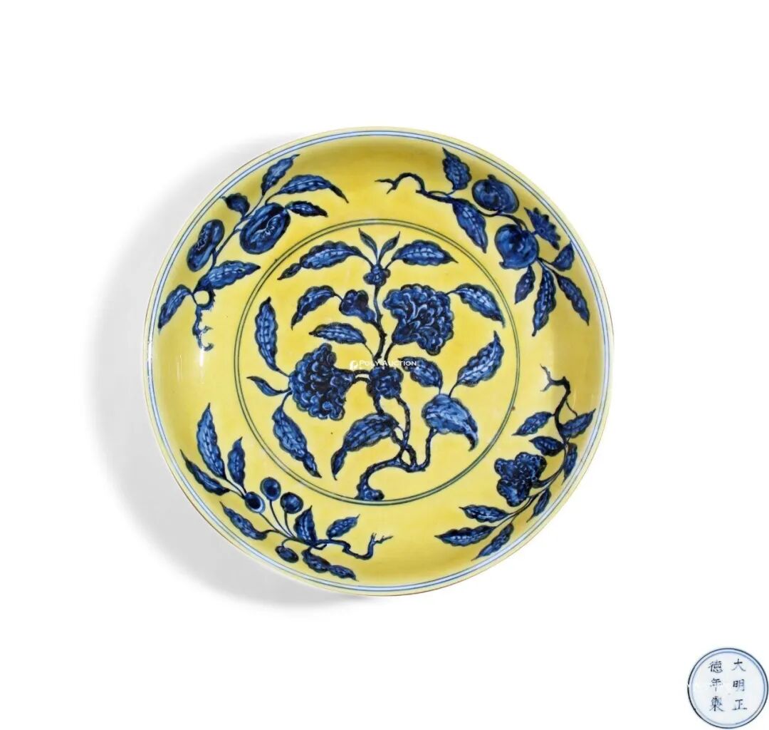 明正德 黄地青花折枝花果纹大盘