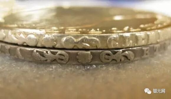 银币的边缘也没有浪费,布满了装饰图案和文字。这枚铸造极为精致细密的银币,“银元网”成为名闻天下的著名银元。