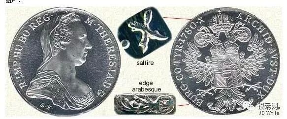 奥地利玛丽亚·特蕾莎-塔勒银币,份量很重,并在1780 年首次铸造,在大约150 年前的鼎盛时期,曾经作为付款货币应用于80多个国家,被称为商业钱币。