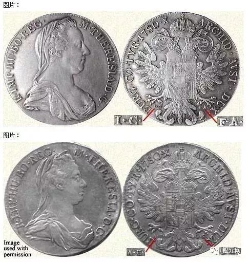 后来的奥匈帝国和一战后的奥地利,又重铸了一批特蕾西娅银币,已不用于流通,主要是作为纪念币,币上的年号始终是1780年。