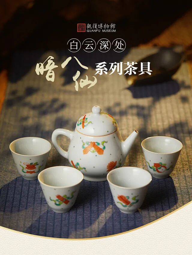 观复博物馆以“暗八仙”为主体纹饰,以“八仙齐来”为吉祥寓意,推出了一套——