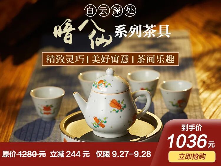 9月27-28日,此白云深处暗八仙系列茶具套装,限时优惠中。大家喜欢的话不要错过。