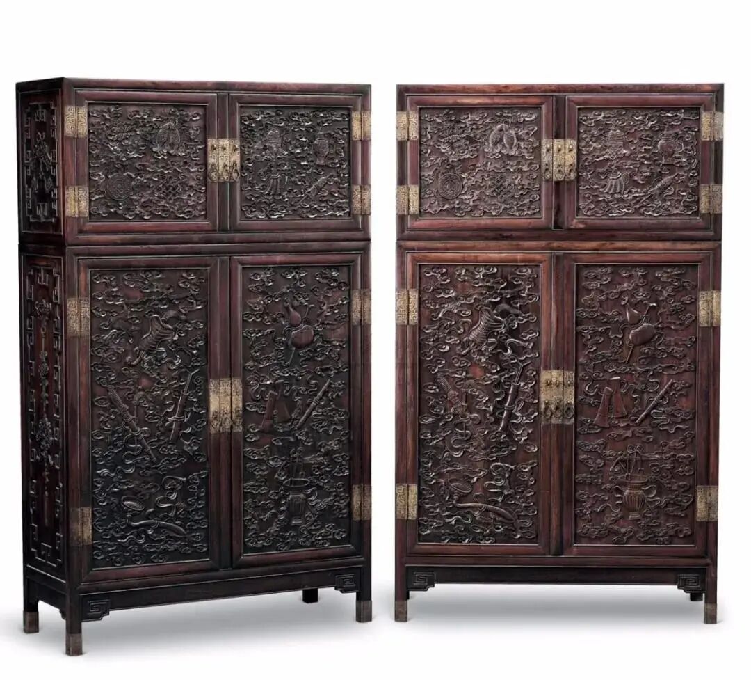 ▲紫檀木雕暗八仙立柜清 故宫博物院藏