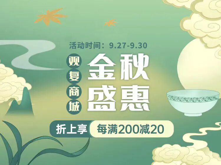 9月27-9月30日,观复商城,金秋盛惠,活动进行中,折上享,每满200减20!