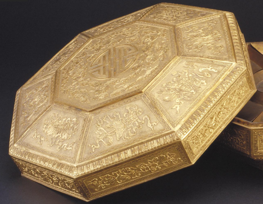 ▲铜镀金倭角食盒 清 故宫博物院藏