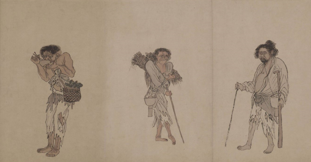 此图原共绘流离失所的难民二十四人,这种描绘生活在社会最底层人物的画在古代是极其罕见的。作者如实描写,不加任何修饰,对笔下人物寄予了深厚的同情。