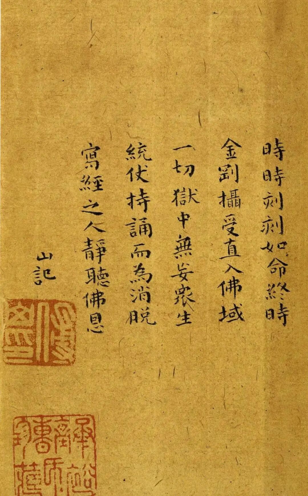 此帖为傅山小楷《金刚经》,精致醇雅,把观赏者带到了庄严肃穆的清静佛地,听他向我们娓娓动听地朗读佛家经典,同样使我们屏住气息,体会到心灵的震撼。