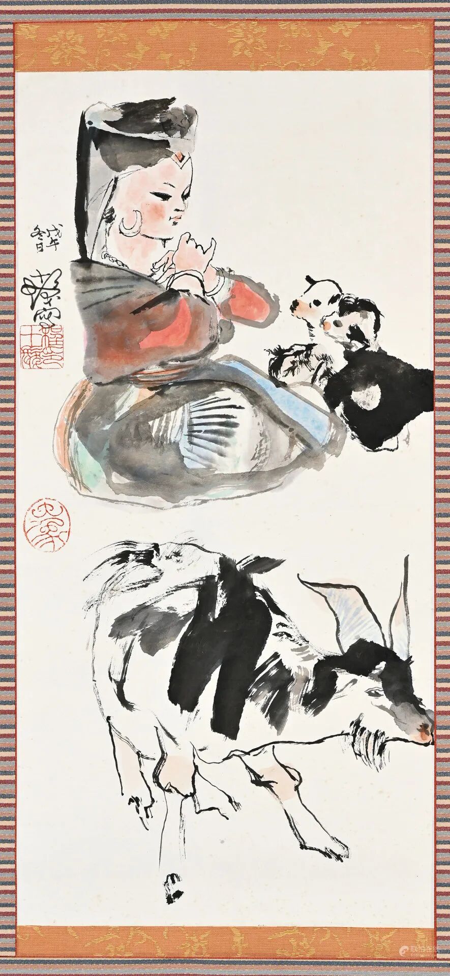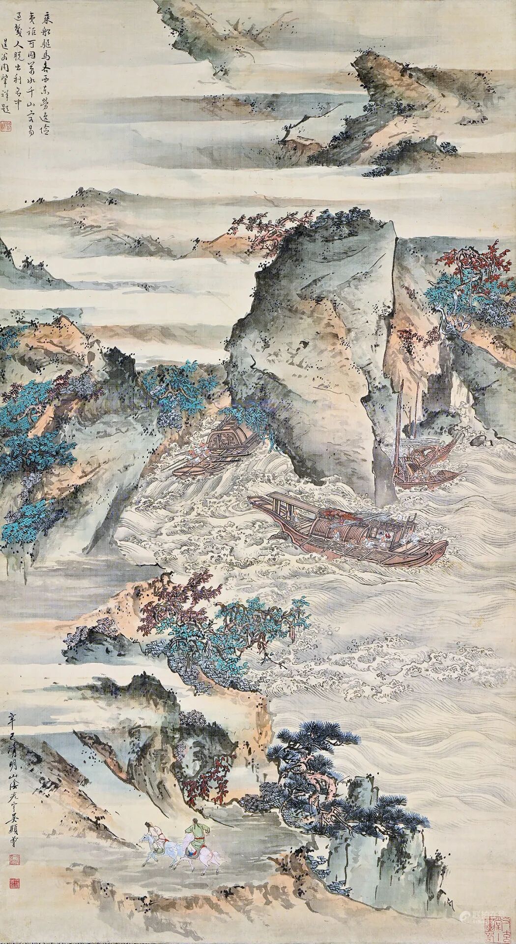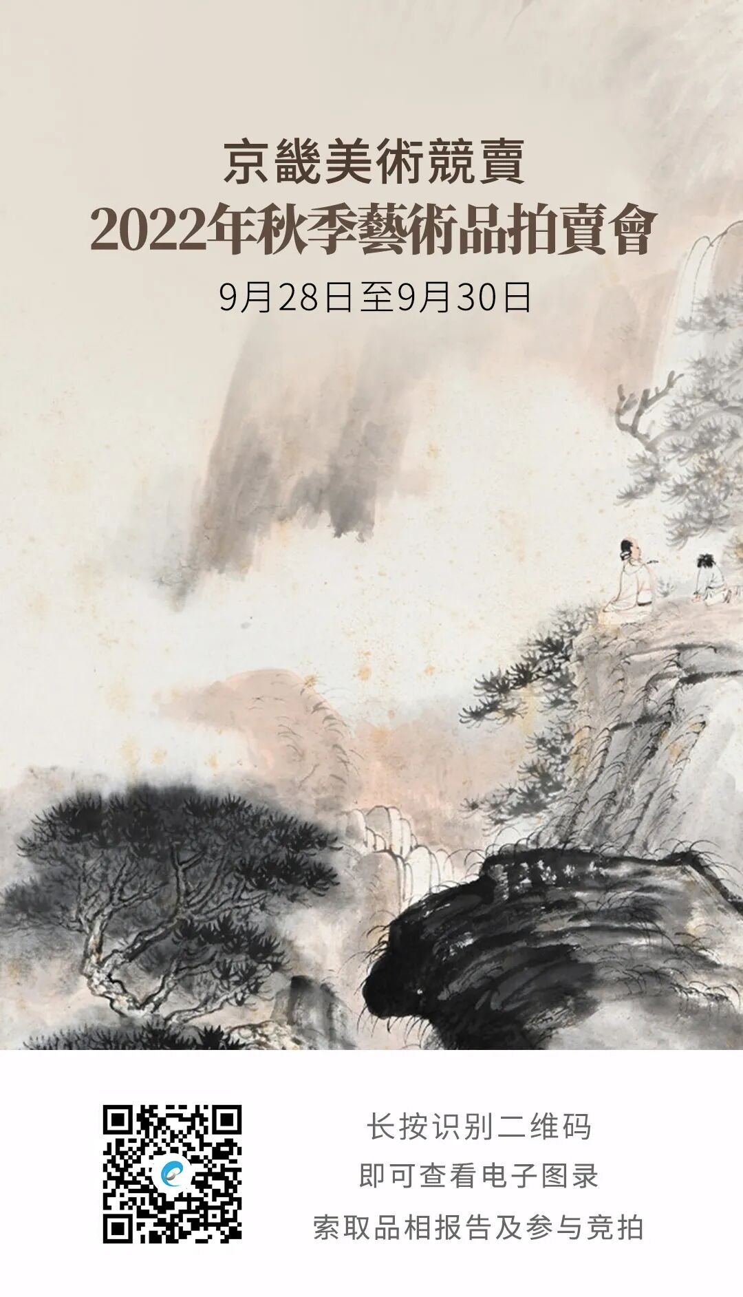 拍品估价:300,000 - 900,000 日元款识:(画)枢轩先生雅属。癸未夏,颜伯龙写于椿草堂。(书)丙子闰春,彭城张伯英。说明:余伯雨刻扇骨,余伯雨,晚清民国时期刻骨大家,字佛元,号江东老龙,又号雕龙轩主,南京人,善单刀刻,尤擅阳刻。所刻扇骨,章法井然,人物形态颇为生动,线条遒劲有力,有轻重、粗细、缓急之变化,文字刊刻甚精。于扇边作山水人物,并喜题长跋,饶富文人画韵。作者简介:颜伯龙,满族,正黄旗,北京人。名云霖,字伯龙(以字行),号长白布衣,所居椿草堂。民国时期京津画派著名的花鸟画家,工山水、人物、翎毛、走兽。因颜先生不喜仕途,只想做一介布衣,潜心作画,又因颜先生祖籍长白,故称“长白布衣”。张伯英,字勺圃,光绪壬寅年补行庚子辛丑恩正并科顺天榜举人,书法家、金石鉴赏家、诗人、学者。在中国书画艺术流传影响周边国家的同时,中国书画的装裱艺术也传至海外,一直影响至今。其中很好的继承中国传统,发扬光大并改进创新的当属日本。在日本奈良时代,曾遣使来华学习装裱书画的技术,由张彦远为导师。现今日本装裱书画之法,即参照中国唐朝装裱法,其格式亦参照了中国宋室裱法,以绍兴府式为标准,后又按其本国的风俗习惯,创出了独特的风格。日式装裱,工艺精细,用料考究,配色极富变化,画面具有平整、齐、光、不皱的特点,又因凡日式装裱的书画作品,往往同时配有桐木盒,置防虫剂于其中。每每展观作品,虽经数十年甚至上百年,作品依旧保存如新,品相极佳,更因作品来源清晰,流传有序且装裱精致,极受藏家客人关注。此次拍卖将呈现一批这样的书画作品,以清末民国、现当代书画为主,当中不乏名家佳构。拍品估价:250,000 - 750,000 日元作者简介:孙其峰,山东招远人,国立北平艺专毕业。天津美术学院终身教授,天津当代美术教育的重要奠基人。曾任天津美术学院副院长。擅山水、花鸟、书法、篆刻,兼通画史、画论。款识:仙人楼阁,悄无人迹,闭瑶房数卷,丹书在石床,侵晓鹤翻松露冷,松花细细落衣裳。壬午冬月,仲翁世太伯七旬晋四志禧。愚再晚梁树年写祝。作者简介:梁树年,名豆村,堂号安樗,斋号警退斋;北京市人,童年读私孰,喜爱诗画,写生画名于乡里,拜画家祁井西为师,后又拜张大千门下,系统地研究了前代画家王石谷、石涛、郭熙及王蒙的画法,取名家之长,融会贯通,从而形成自己独特的风格。他曾在北京第四女子中学、北京艺术师范学院美术系任教,后任中央美术学院国画系教授,北京山水画会副会长。拍品估价:2,800,000 - 8,400,000 日元<一>庐山东南五老峯, 青天削出金芙蓉。九江秀色可揽结, 吾将此地巣云松。乙亥十月写于故都蛰庐借居,蜀人张爰。<二>庐山真面不可见,远从画里写来看。十年弹指飞腾过,梦决银河彻耳寒。丙戌春日重题,大千居士张爰。钤印:张爰之印、吾将此地巢云松、大千、人间乞食、大千眼底作者简介:张大千,字季爰,法号大千,中国近现代知名艺术家,生于四川内江,祖籍广东番禺。因其诗、书、画与齐白石、溥心畬齐名,故又并称为“南张北齐”和“南张北溥”。与黄君璧、溥心畬以“渡海三家”齐名。拍品估价:1,200,000 - 3,600,000 日元作者简介:程十发,中国海派书画画匠,在人物、花鸟方面独树一帜。在连环画、年画、插画、插图等方面均有造诣。工书法,得力于秦汉木简及怀素狂草,善将草、篆、隶结为一体。上世纪70至80年代,日本经济高速增长,日本民众热衷于艺术品投资。与此同时,中国改革开放亦转入快车道,中日间的经济往来频繁,艺术交流也进入到一个高速发展的阶段,这一时期通过文物商店以及工艺品进出口公司出售中国书画艺术品大量流入日本。本专场的作品均为日本藏家在上世纪70、80年代购于中国各地文物商店,作品上或带有文物商店旧标,或带有火漆,来源可靠,流传有序。