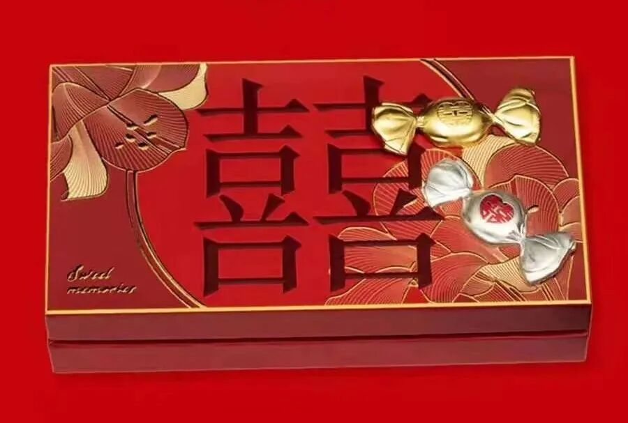 在国潮风兴起的今天,一套中式婚礼风格的糖果金银条,用来送人再合适不过了。