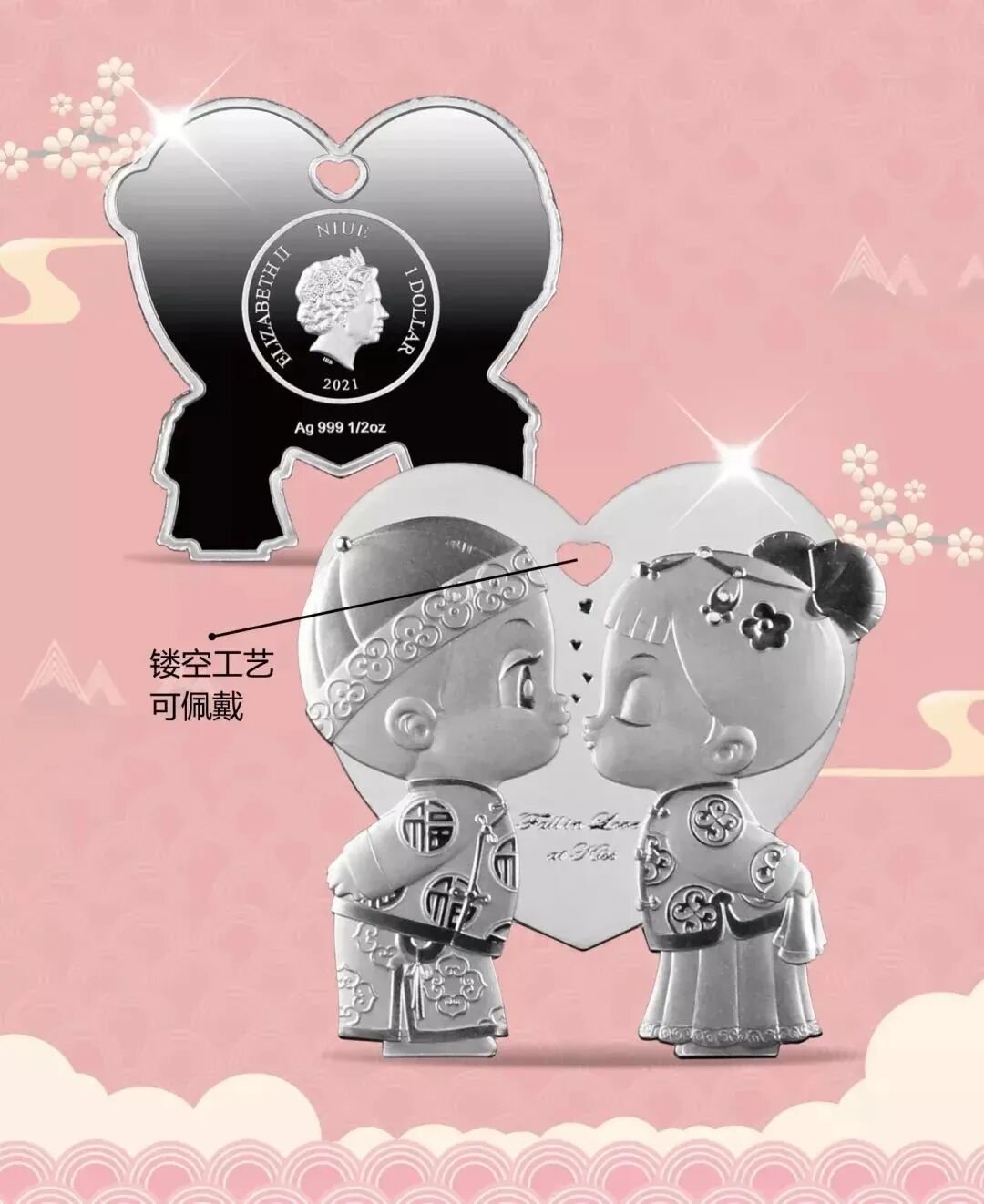 如果你想要表达“金童玉女、甜蜜恩爱”的祝福,选择这枚“一吻定情”系列纪念币,是再好不过的啦!