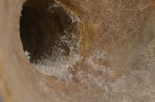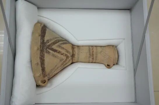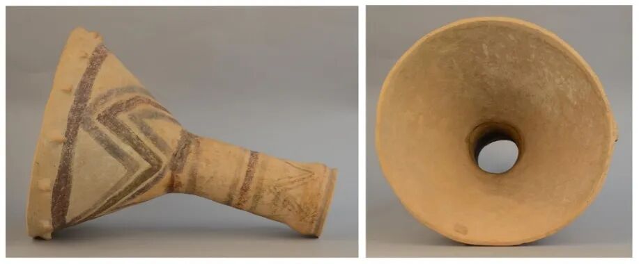这件新石器时期的彩陶鼓,曾保存在一个大木箱中。2016年的一天,当库房管理员再度开箱检查时,彩陶鼓圆筒状的内壁和喇叭口内,竟长出了白色“绒毛”。![]()