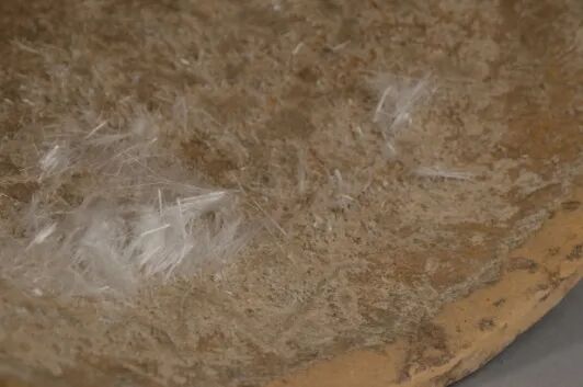 文物保护工作往往要从分析检测开始,找准病因,才能对症下药。文保人员首先用镊子小心取下彩陶鼓表面的“白毛”,放在显微镜下一看,原来“白毛”其实是一种针状的盐类结晶物(图四)。![]()