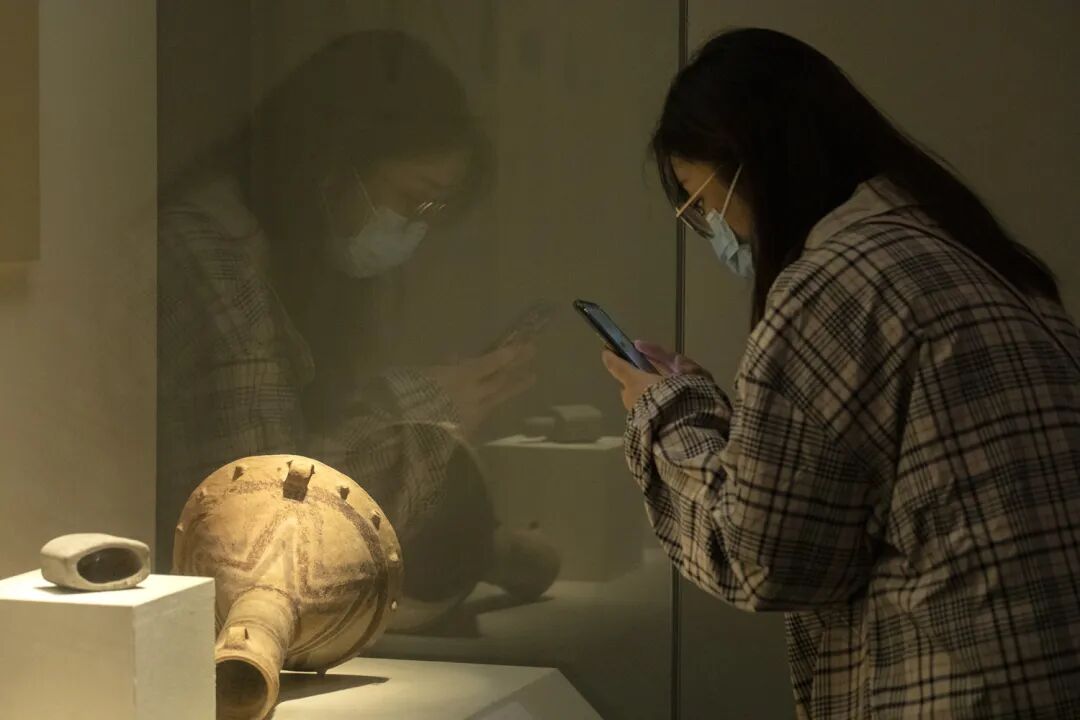 在国家博物馆“古代中国”基本陈列有一件新石器时期的彩陶鼓,是国博馆藏一级文物。数年前,它曾长出长长的“绒毛”,经文保人员“贴面膜”处理后,才重新“上岗”。这一案例入选“片羽重辉——国家博物馆文保成果展”。